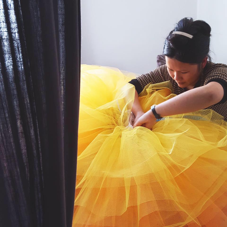 Après une reconversion, j’ai passé un diplôme des techniciens des métiers du spectacles en habillage. Mes premiers pas dans le milieu de la scène, je combine mes deux passions le cinéma et la couture. Je passes ensuite un Diplôme des métiers d’Art costumier qui me permet de travailler par la suite au Moulin Rouge, l’Opéra Garnier, L’Atelier Tiepolo à Venise, participer au tournage du film Eiffel. Cependant, vous imaginez sans doute les conséquences désastreuse qu’a produit le covid-19 pour le monde du spectacle.