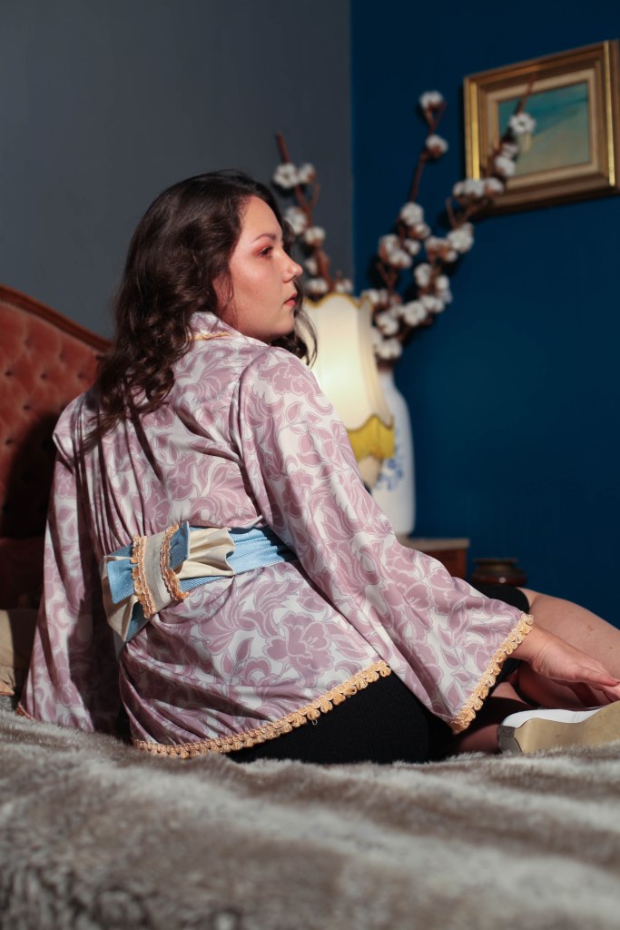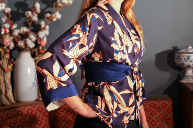 Kimono en viscose et sa ceinture obi en laine.
